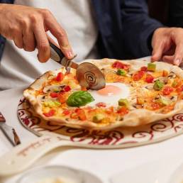 Las pizzas, cocinadas en horno de leña, son crujientes y están llenas de ingredientes frescos y deliciosos. Además, ofrecen ensaladas, risottos y platos de carne que complementan perfectamente la experiencia gastronómica.